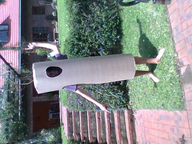 yo estaba atado por tiempo y dinero para un disfraz de Halloween, así que decidí ir de vieja escuela y ser creativo con un par de cajas, papel de construcción y sharpie. Si eres capaz, las cajas de costura juntos hace el traje mucho más durable.Paso