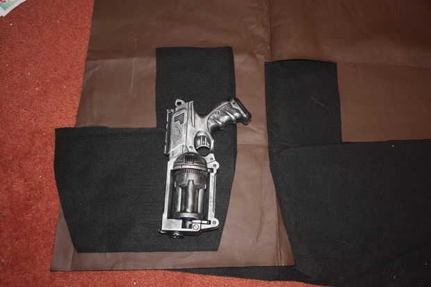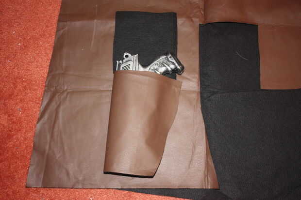 Para hacer una funda que la pistola, utilicé el método muy científico de poner la pistola en la tela y doblar a la tela encima, entonces corte alrededor de él. Lo que terminé con es la forma que se muestra en la segunda foto.