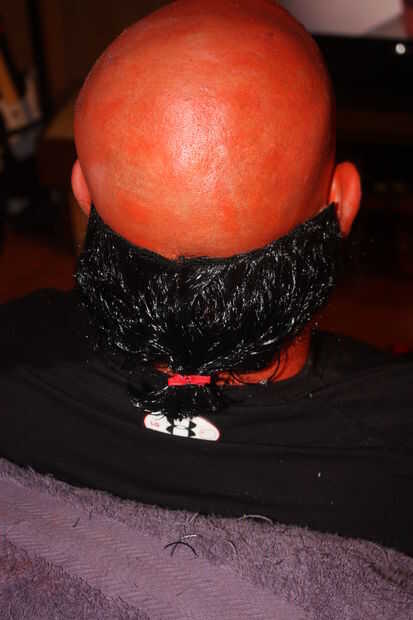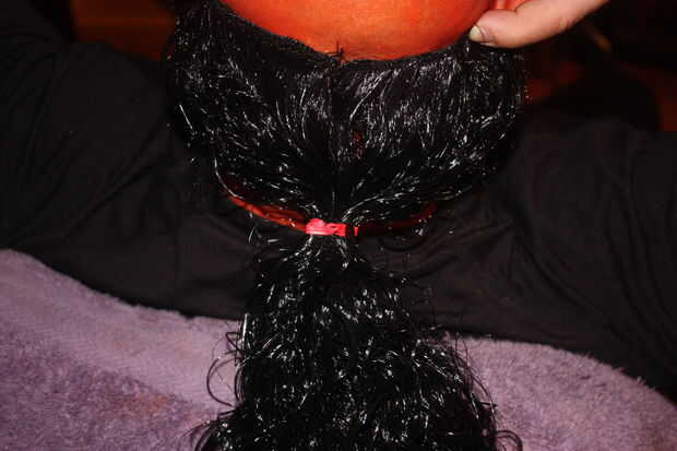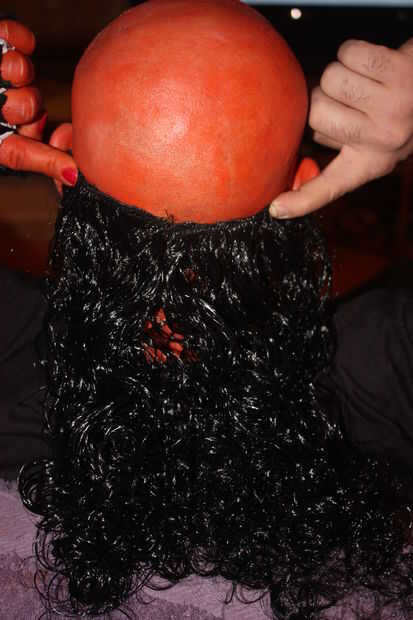 He pintado la goma del espíritu a través de la parte posterior de la cabeza de mi hermano y déjelo secar por unos minutos hasta que hortera. Luego había pegado las extensiones del pelo de dos en la parte posterior de su cabeza y lo mantienen en su lugar mientras el espíritu goma set up. Reunidos los extremos del cabello y envuelve la ligadura alrededor para convertirla en una cola de caballo y luego había cortado en un trozo pequeño de cola. En este punto, se veía bastante bien, pero como ya he mencionado, cayó más tarde :(