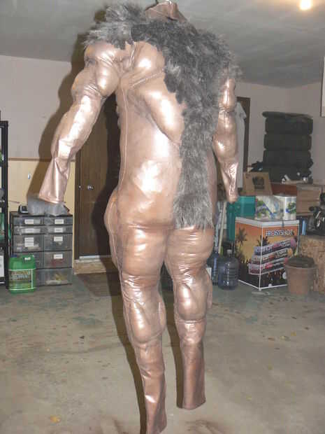 Por ahora, básicamente se hizo el traje y sólo requiere un poco más de piel en las manos y la parte inferior de las piernas. Sin embargo, no pude agregar esa piel hasta que realmente pude intento en zancos y guantes.