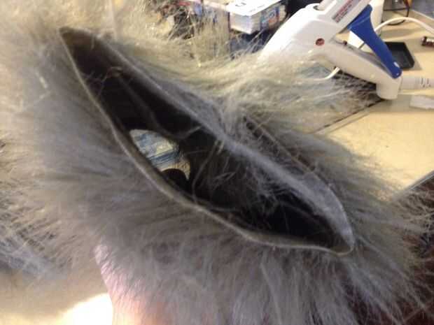 Compramos unos paquetes de pelo traje en nuestra tienda de artesanía local (vienen en hojas de 8.5 "x 11" en un montón de colores diferentes). Simplemente seleccionamos el color que empareja de la máscara que nosotros compramos. También compramos 4 hojas de gris fieltro y utiliza algunos 1/2" elástico que teníamos puesta alrededor.