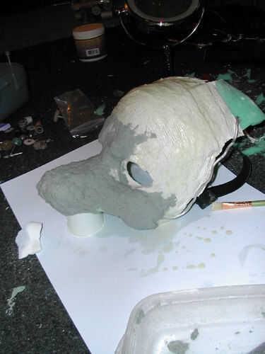 está bien, así que me salté unos pocos pasos, aquí... im sorry! Básicamente he formado una pequeña armadura de alambre para el hocico, se puede ver funcionando a lo largo de los lados, bonito y feo. A continuación encolar el epoxi y había pegado poco de espuma sobre la armadura de alambre con pegamento caliente. Recorte el hocico de espuma hasta la forma que desee. Hacer un poco más que lo necesario ya que vamos a añadir a ella.