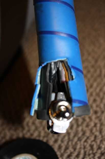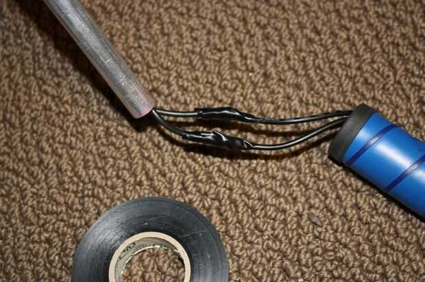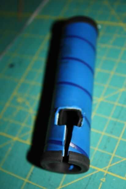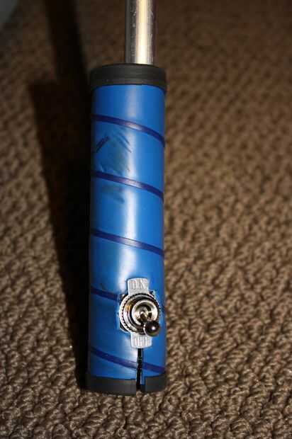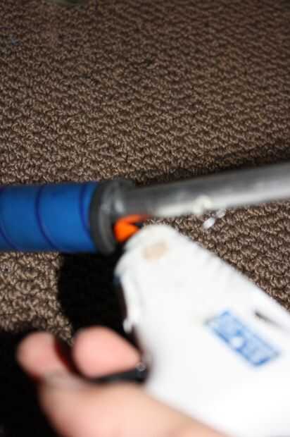 Utilice pegamento caliente en la parte superior de la empuñadura para fijarlo al tubo y pegar la raja cerrada así como para mantener el interruptor en su lugar.