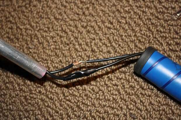 Corte los cables eléctricos del sombrero para que se extiende cerca de 1.5" del tubo de aluminio. Tira los 3/4" del extremo. Convertirlos en pequeños ganchos con sus pinzas y lo mismo para los cables de conmutación. Conectarse cada gancho de alambre interruptor de gancho de alambre un sombrero y pizca firmemente con las pinzas. Cubrir los cables expuestos con cinta aislante para que las dos conexiones independientes no toquen.