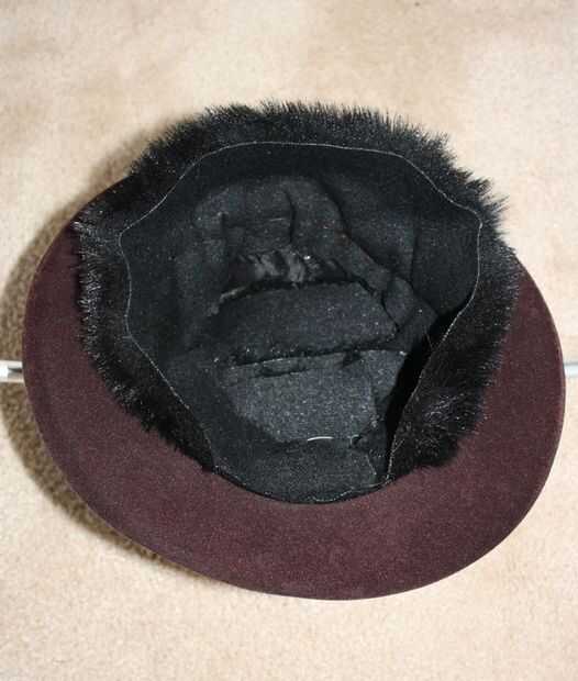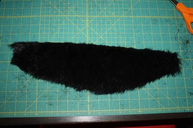 Cortar un trozo de piel sintética 20" largo por 4" de alto. Oriéntelos para que la piel cuelgue en la dirección corta (para la piel hacia abajo si sostienes la pieza horizontalmente). Corte una curva de un lado para que la pieza es 2" de alto en cada extremo y 4" en el centro. Coloque la pieza en el interior del sombrero, hacia fuera, con los pernos (pins señaladas!) de la piel y Pruébate el sombrero. Ajuste el "pelo" hasta parece correcta, luego pegamento caliente en el sombrero. Si no desea que el "pelo" para mostrar, recorte en el ala del sombrero-it todavía le ayudará a mantener el sombrero en la cabeza.