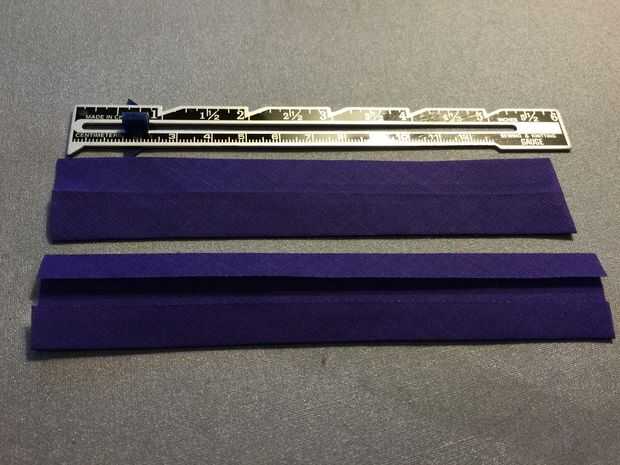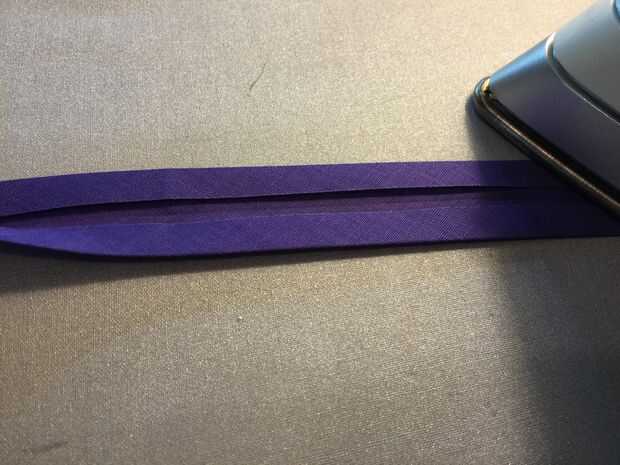 Paso 9: Presione abrir la cinta púrpura, cortar 2 5' piezas. Forma de cinta de bies alrededor de coletas, pin, mano o a máquina de puntada cerrada