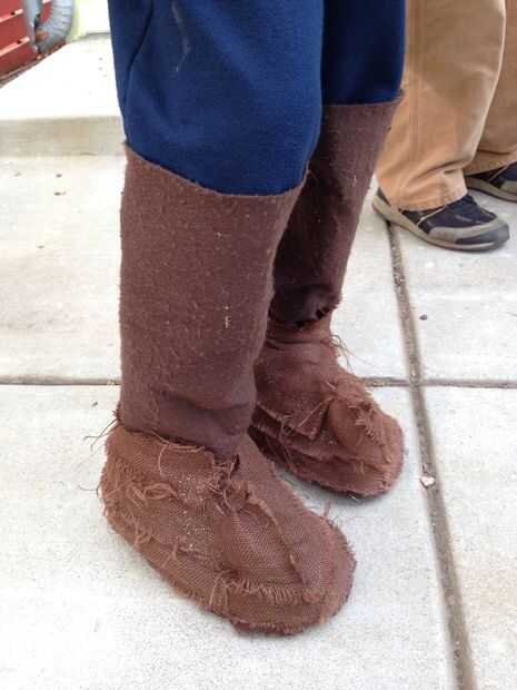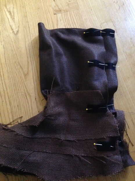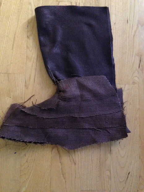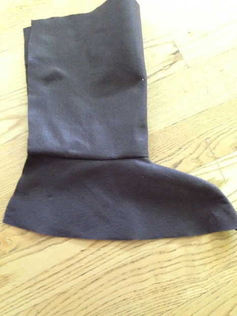 adapté el patrón de semilla de este patrón.  Corte el pie cubiertas de fieltro.  Obviamente, hice uno para cada pie.  He utilizado las sobras que tenía desde la traje para cubrir el fieltro.  Sólo cubrí la parte inferior como el resto quedaría cubierto por el manto.  Entonces usé velcro para cerrar en la parte posterior.