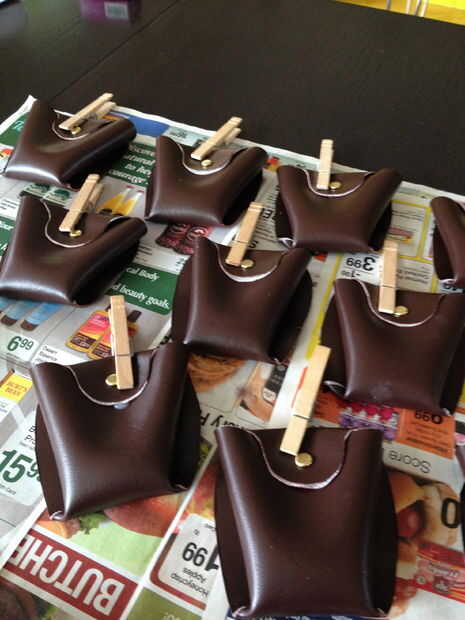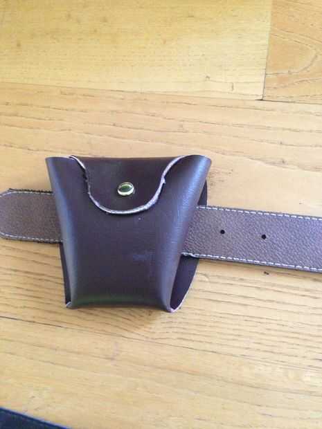 Vi muchas versiones diferentes de estos en internet y decidió la forma más económica sería hacer la mayor parte de mí. He encontrado algunos viejos cinturones en distintas tiendas de segunda mano alrededor de la ciudad. He utilizado vinilo marrón que pegan, utilizando un adhesivo en aerosol, para las bolsas de munición. VI varias plantillas para estas bolsas en internet y, después de mucho ensayo y error, surgió uno que funcione para nosotros. Tengo algunos clavitos en grapas a utilizar como la decoración de cierre (planeaba pegar cierre, no están funcionando). Los clavos eran un poco demasiado largos, usé el cortador de alambre floral para cortar los extremos de algunos. Funciona cualquier cortador de alambre. He marcado la posición para el brad y utiliza un palillo para hacer un agujero. Que les montado con una pistola de pegamento caliente, asegurándose de dejar una "ranura" para se deslicen fácilmente en la cinta. Hice una bolsa más grande de la correa alrededor de la cintura y 4 bolsas de munición para cada Jawa.