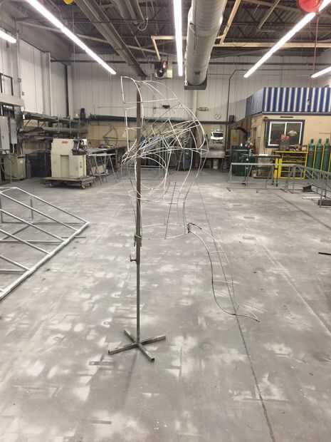 Empecé con un boceto rápido en una hoja de madera contrachapada para escala y comenzó un marco de soldadura juntos de algún alambre de la cerca en homedepot.