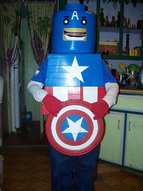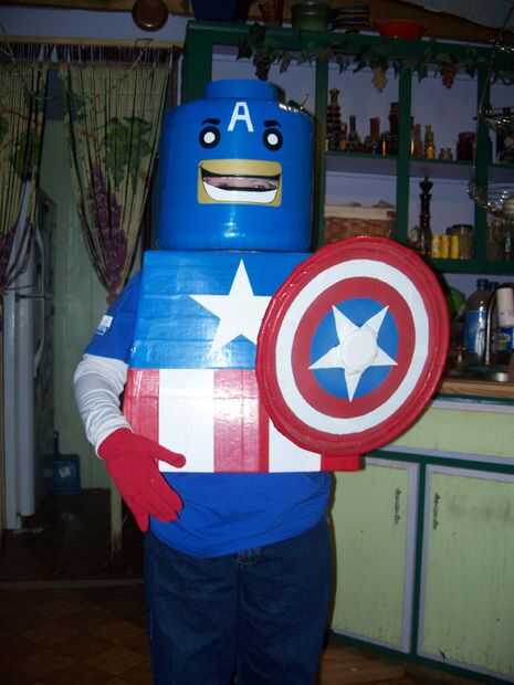 He cambiado los materiales utilizados también, el traje entero fue puesto junto con cartulina, cuatro diferentes colores de cinta adhesiva y pegamento blanco llano. La cabeza fue hecha por varios anillos de corte fuera un cajón pesado sandía cartón que obtuve de su trabajo. Me pegan los anillos de cartón en una pila y había cubierto de cinta aislante azul.