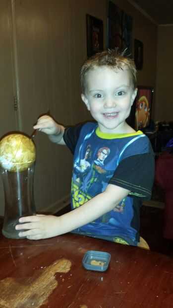 Personal fue hecho usando una varilla de metal y bolas de espuma de poliestireno, pintado en pintura acrílica metalizada oro. He pegado el pájaro en la parte superior y había pintado los ojos y pico.