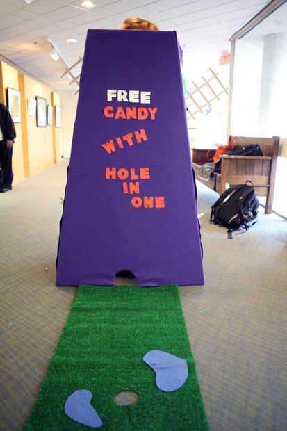 A todos esos principiantes golfistas (incluyendome) hacia fuera, aquí hay algo puedes practicar tus habilidades cuando tengas un minuto o dos. También es muy fácil de hacer y portátil.Nota: Cubra el tablero con papel de color verde o pintura verde.Pa