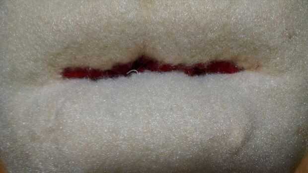 Puesto que no había forma de la cara para el labio inferior, agregué algunos polyfil, que parecía bueno, pero no grandes.