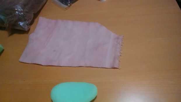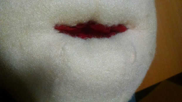 Para la boca he insertado a la tela roja y cosidos juntos.