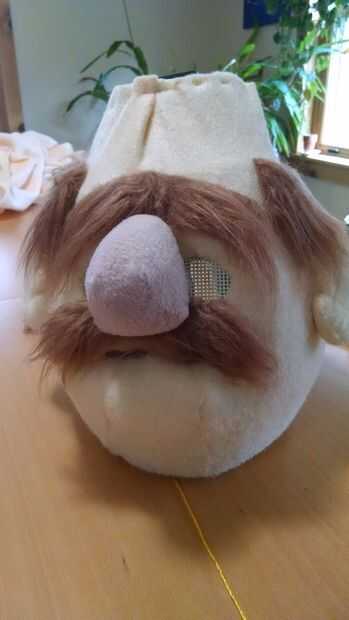 Los ojos que traté de emparejar lo más cerca del color de la piel como sea posible, lucen bien, pero deseo que se oculta aún más. Si nos podríamos haber conseguido los más ocultos nos podríamos han convertido en más grande y así sea más fácil ver de. Fueron unidos entre la espuma y el paño grueso y suave de coser las tres capas juntas.