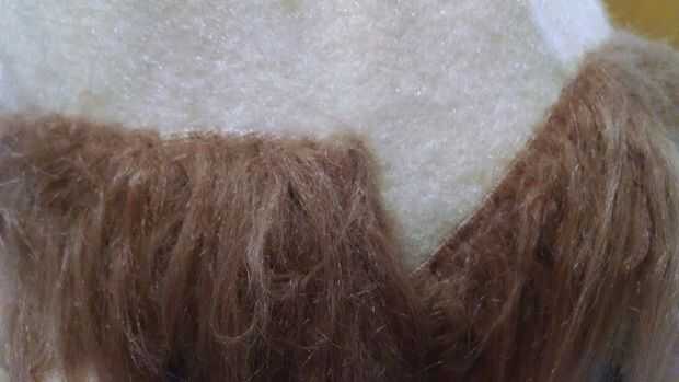 Finalmente el pelo y el sombrero. Esta imitación del pelo era largo y sorprendente. Las cosas tienen sólo de Joanne no era casi tan buena. El sombrero tiene cosido a la cabeza más baja que esperada y no fue capaz de usar el punto más pequeño que había tallado en la espuma para él. Esto era debido a cómo todo ha ido juntos. Habría parecía divertido por el sombrero que hasta el momento de las cejas.