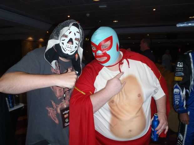 Pasamos de maravilla con el traje y la máscara me dejó realmente beber como la noche se encendió!