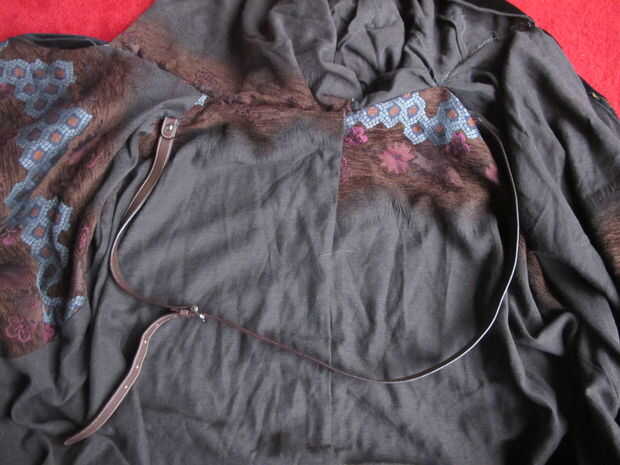 Es simplemente una correa de cuero que he conectado en los hombros para evitar que el manto de caerse.