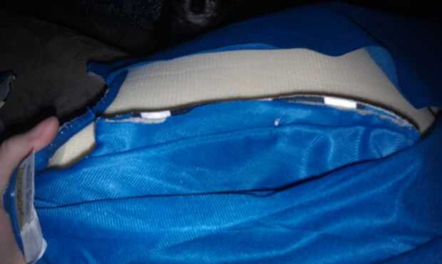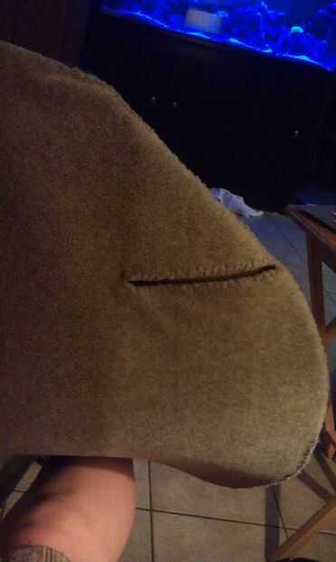 Después de alinear la tela en la parte superior del traje, me sentía a través de él se sientan las aberturas para los brazos y había marcado con un marcador de fieltro. Corte la ranura.