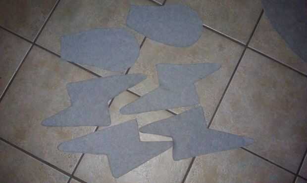 Cortar la zona azul de los ojos. Voltear los restantes patrones ojo boca abajo y traza sobre el fieltro negro. Marca de la izquierda y derecha.