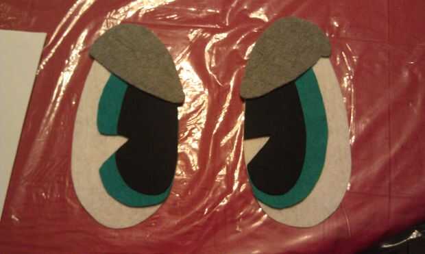 Cortar la zona blanca de los ojos. Vuelta los restantes patrones ojo boca abajo y rastro en fieltro azul. Marca de la izquierda y derecha.