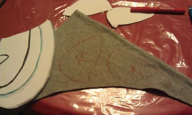Cortar los párpados de los ojos. Voltear boca abajo y trazar las tapas en lana gris. Marca de la izquierda y derecha.