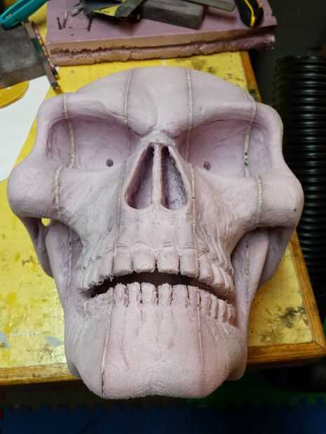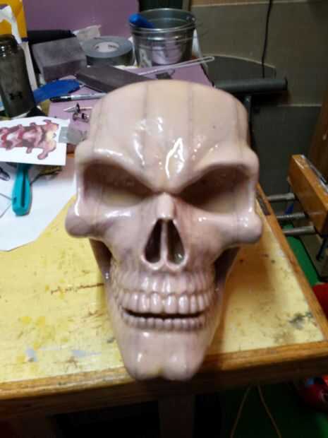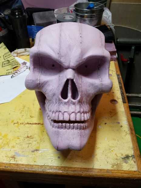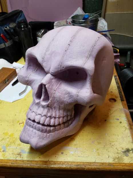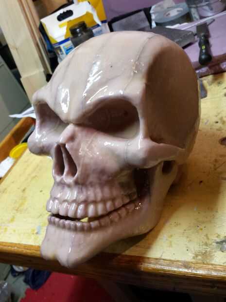 Por cierto, si ya no tiene un colector de polvo, es una buena inversión para un proyecto como este. La cantidad de polvo de espuma es de loca y cubrirá cada pulgada de su cuerpo. El paso final para el cráneo fue untar con una capa de epoxy especial que pedí online.