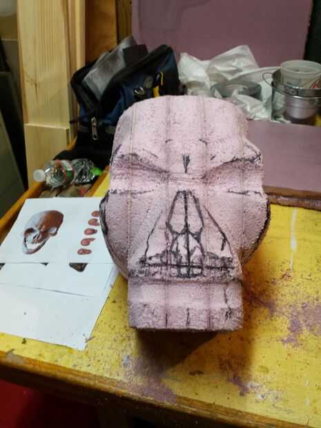 El cráneo tuvo un fin de semana para esculpir. Comencé pegando varios trozos de denso