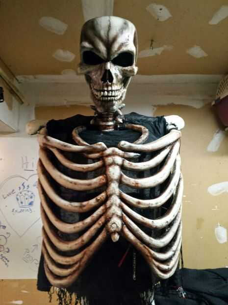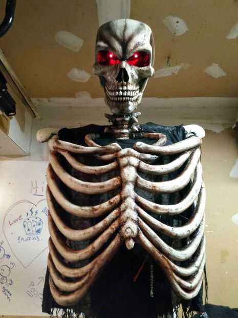 hay un montón de instrucciones en línea para la iluminación por lo que voy a dejar esto a tu propia imaginación. Sin embargo, al caminar por una tienda de auto, encontré con unas tiras de luz LED rojo para un coche y compró algunos para shin para arriba de la clavícula a la luz de la Calavera de abajo y la segunda franja brilló por la iluminación detrás de la caja torácica haciendo que parezca que no hay nada detrás de las costillas. Estas tiras de la luz fueron fácil y perfecto. Vienen envasados con las baterías y un botón. Sólo tuve que pegarlas en el lugar y extender los cables por lo que pude pulsar los botones en la voluntad.