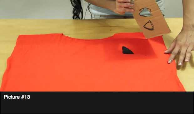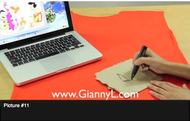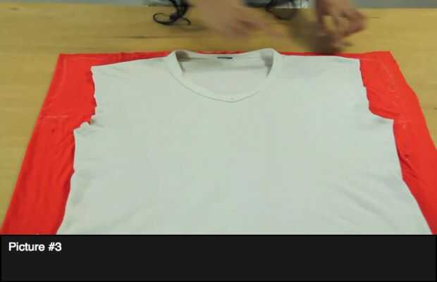 Cuadro #3 y figura #4: Con la ayuda de sleeveles otra camiseta marca el molde y cortar la forma de la misma.