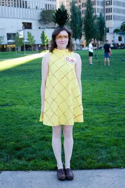 Decidí ser una piña porque parecía bastante sencillo de sacar, y es lindo. Un montón de mis disfraces de Halloween han sido diversión o dulce. Uno de estos años voy a ser algo espeluznante o miedo, creo que sería un buen cambio de ritmo.