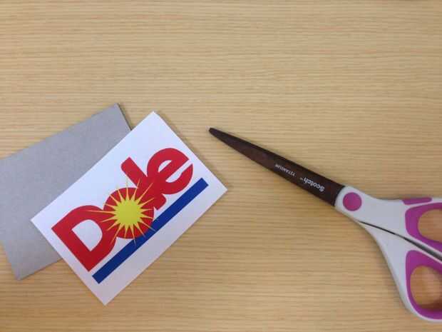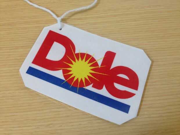 Encontró la imagen del logo de Dole y me imprime. Si tuviera que hacerlo de nuevo, imprimir dos y poner espalda con espalda, para no tener que preocuparse alrededor de los bancos.