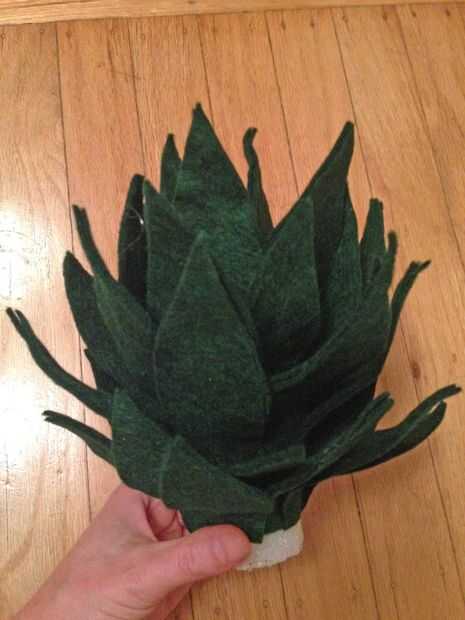 Wow, se ve muy bien! buen trabajo. Ahora pegamento caliente corona a la montura. Cubrí la parte inferior de mi corona en fieltro verde, tan no hay espuma blanca brillante mostraría a través.