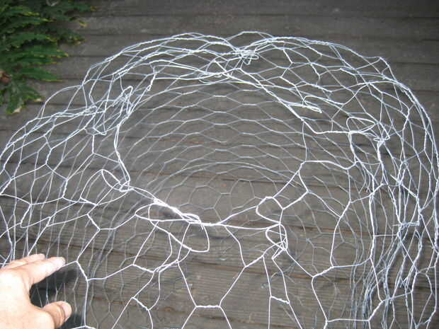 Usando mis manos, doblado el borde superior cada pocas pulgadas para completar la forma. Hecho tipo de pliegues en el cable que aplanar uno contra el otro. Luego pasa alambre de aluminio muy flexible por este borde para sujetarlo.