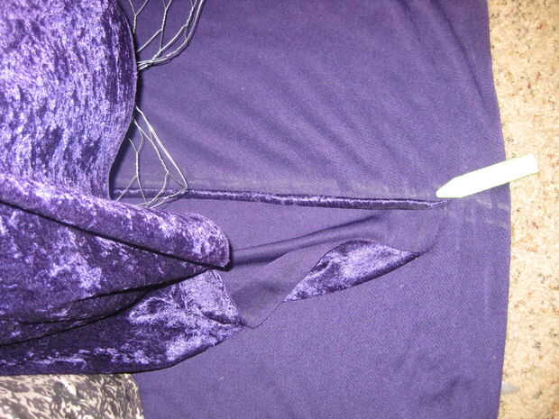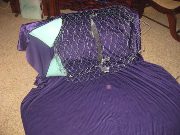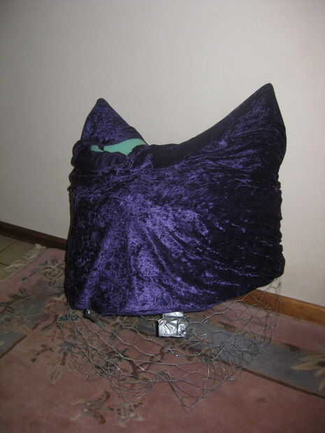 En la parte superior, comenzó a cuelgue a la tela extra de las orejas y podría incluso haber 'atada' algunos puntos con lazos de alambre de aluminio, pero no te preocupes demasiado por en este momento. La tela fue eventualmente reajustar de todas formas cuando he añadido las puntas además cerca del final.