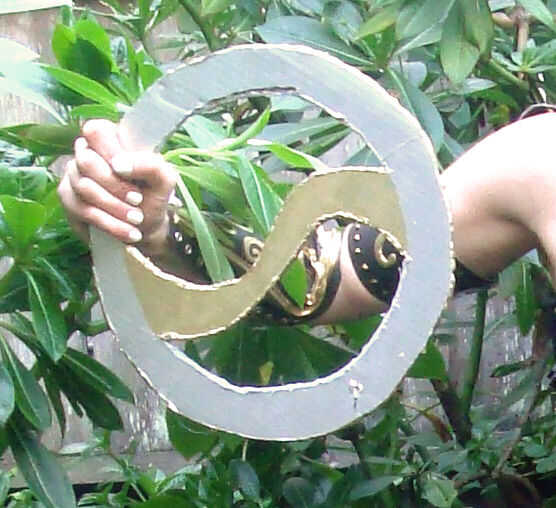 Esto es realmente sencillo de hacer.  Esbozar el diseño de cartón luego recórtalo.  Rocíe el anillo externo de plata y el oro de la sección interior.