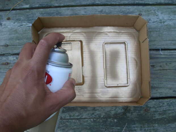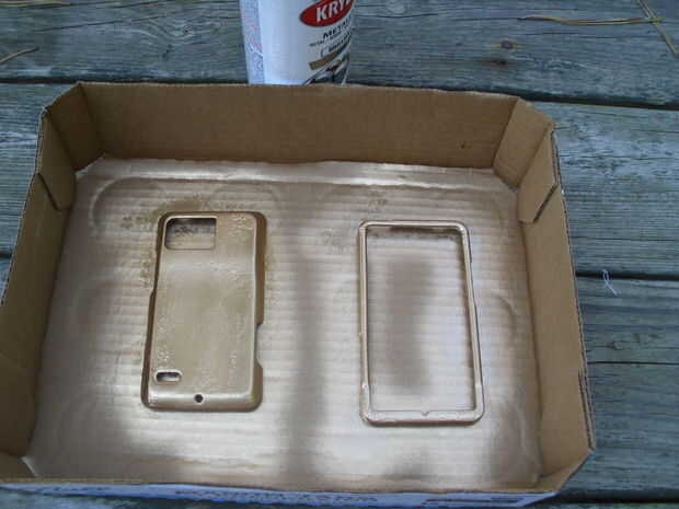 A continuación poner el caso en su cartón o periódico y rociarlo con la pintura. Debido al tamaño esto debe tomar unos 30 segundos para completar. Mientras se espera a ir seco ver un episodio o tres de le comedia favorito británico en Netflix; Simon Pegg es brillante en "Spaced".