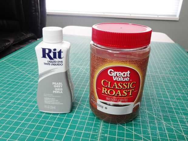 - Agita la tela ahora ligeramente gris alrededor en el café y aclarado, tal como fue hecho con el tinte gris