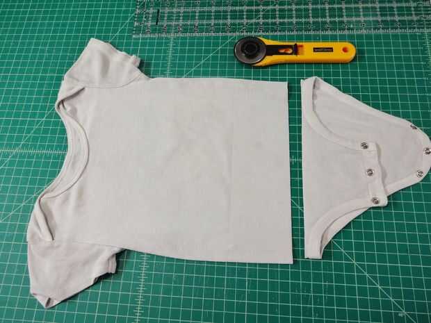 Los broches de la parte inferior del mono fueron cortados para convertirla en una camisa normal.
