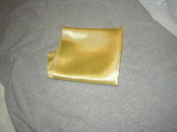 Coser los bordes de la tela para proteger del desgaste, ya que este tipo de tela puede pelarse fácilmente.  Dobladillo todos los bordes de seguridad.  (Hacer esto en el mismo color que la tela amarilla, pero no se olvide volver a la tela antes de colocar este y la camisa a la correa y el cuello!)