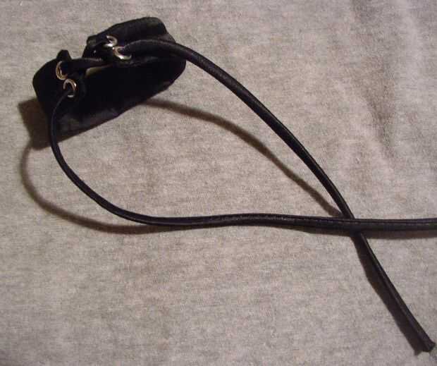 Coser alrededor, dejando un pequeño hueco en uno de los lados largos, recortar la entretela alrededor de la costura y tirón derecho-lado-hacia fuera a través del pequeño espacio.  Empujar las esquinas hacia fuera desde dentro con un objeto embotado-acentuado como antes.  Pulsa el bolso de mano y Sobrecosa o Pespuntear la brecha cerrada.  Usted puede empujar los agujeros e inserte sus ojales ahora, puesto que se presiona.  Si elige hacerlo, también puede cortar el cordón a la medida.  Necesita suficiente cordón a través de los ojales de cuatro y luego atar en un arco.