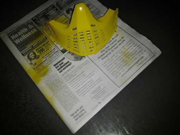 2. en un área bien ventilada, usar pintura en aerosol amarillo para pintar las piezas de plástico.
