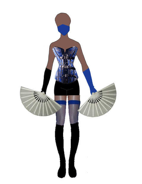 Hasta la rodilla Botas de color negro y los balancines de color apropiados se ve muy bien. Si vas con el azul, verde, púrpura guantes de colores en lugar de los negros, azul, verdes o púrpura botas con medias de rejilla negras puede que desee. A alterar el esquema de colores como mejor parezca.