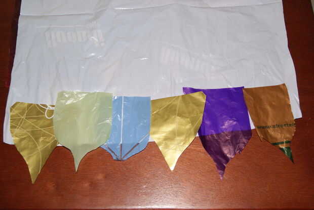 Usamos las bolsas de plástico para crear la cola. Mantenga todos sus recortes colores bolsa - los utilizaremos más adelante.