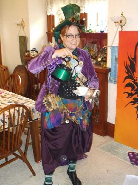 Este traje que hice para una sesión de fotos. Me encanta la foto de Johnny Depp como el sombrerero loco y quería replicar la apariencia tanto como sea posible para la foto. Sí, estoy un poco loca poniendo este esfuerzo en la creación de un traje para