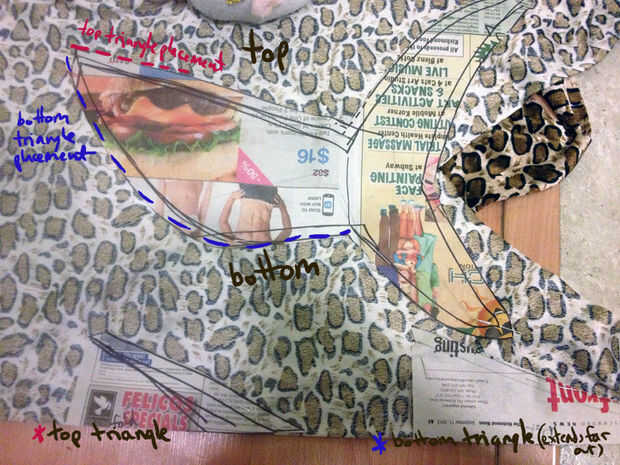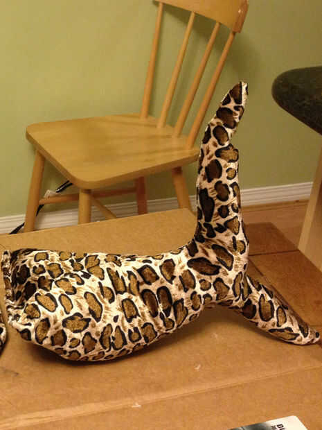 Velcro fue cosido más tarde el triángulo inferior y la parte posterior del cuerpo (otra vez, para facilitar la extracción y la parte del cuerpo del traje podría ser utilizada otra vez como solo, dicen, un jaguar).