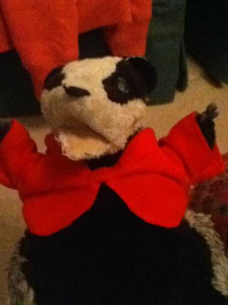 Haz un poco de rojo o hacer uno de alguna tela roja y ponerla en el juguete.