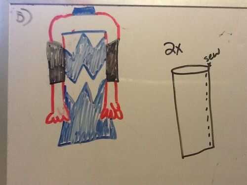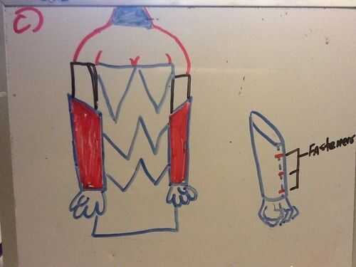 Para los brazos, primero quiere hacer tubos negros que se ajustan en la parte superior de su brazo. Tal vez por debajo de la axila funciona. (foto B)