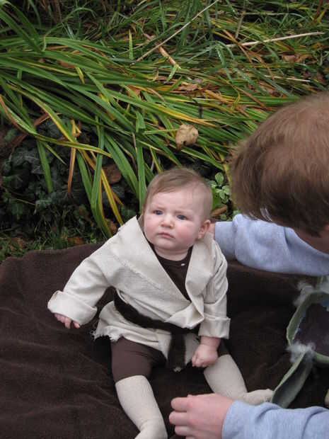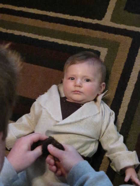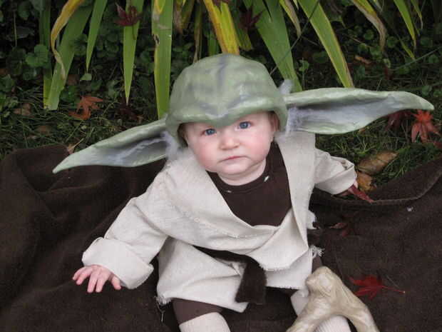 En el momento que hice este traje mi esposa y yo ya tenía un bebé que tenía 6 meses de edad. Entonces para este traje decidimos sólo utilice la que ya teníamos en vez de hacer uno nuevo. Lo siguiente fue decidir qué personaje de Star Wars disfraz de. Mis dos recomendaciones para bebés son una Jawa y Yoda. Desde nuestro bebé particular no podía caminar sin embargo Yoda me pareció la mejor opción.