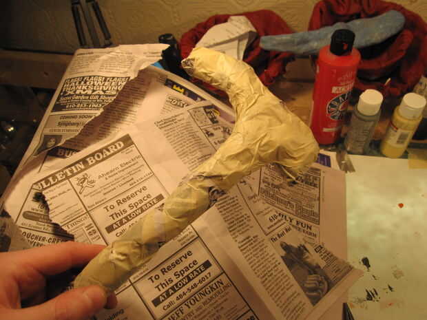 Yoda necesita un bastón. Así que hice uno de diario e hizo el mismo pegamento tienda toalla proceso en lo que hice con el pedazo de cabeza y oído.